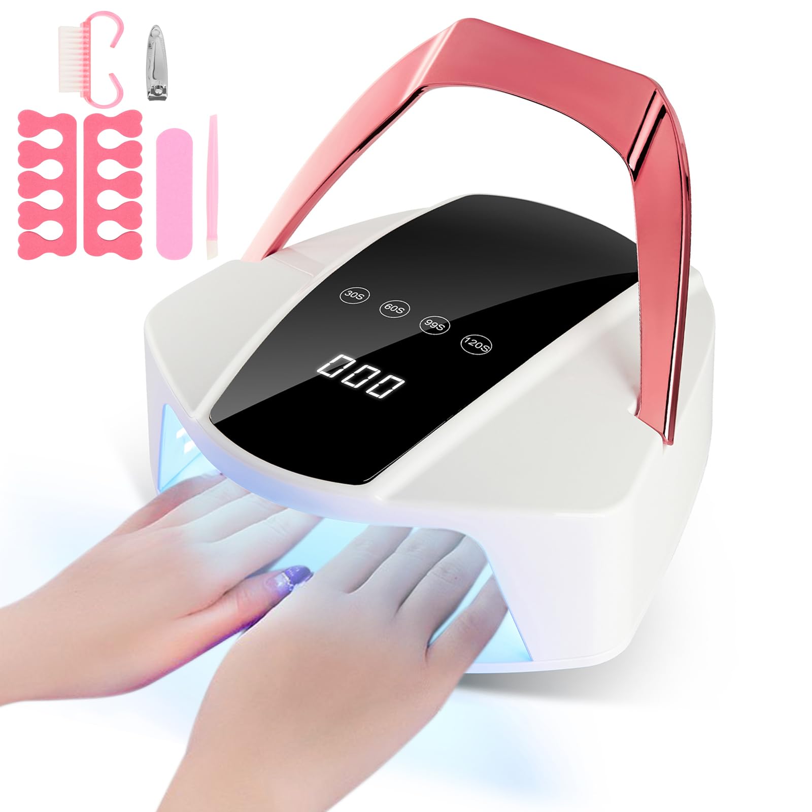 - Large Space and Portable Handle and Detachable Base Design: Big space for curing nails of two hands at the same time.This LED nail lamp for gel polish with portable handle design,it is easy to carry this nail light around to everywhere without pressure, great for nail salons, parties, home & travel use. Detachable base design is more convenient for toenail gel drying and cleaning.Hands and feet Mode can switch at will.