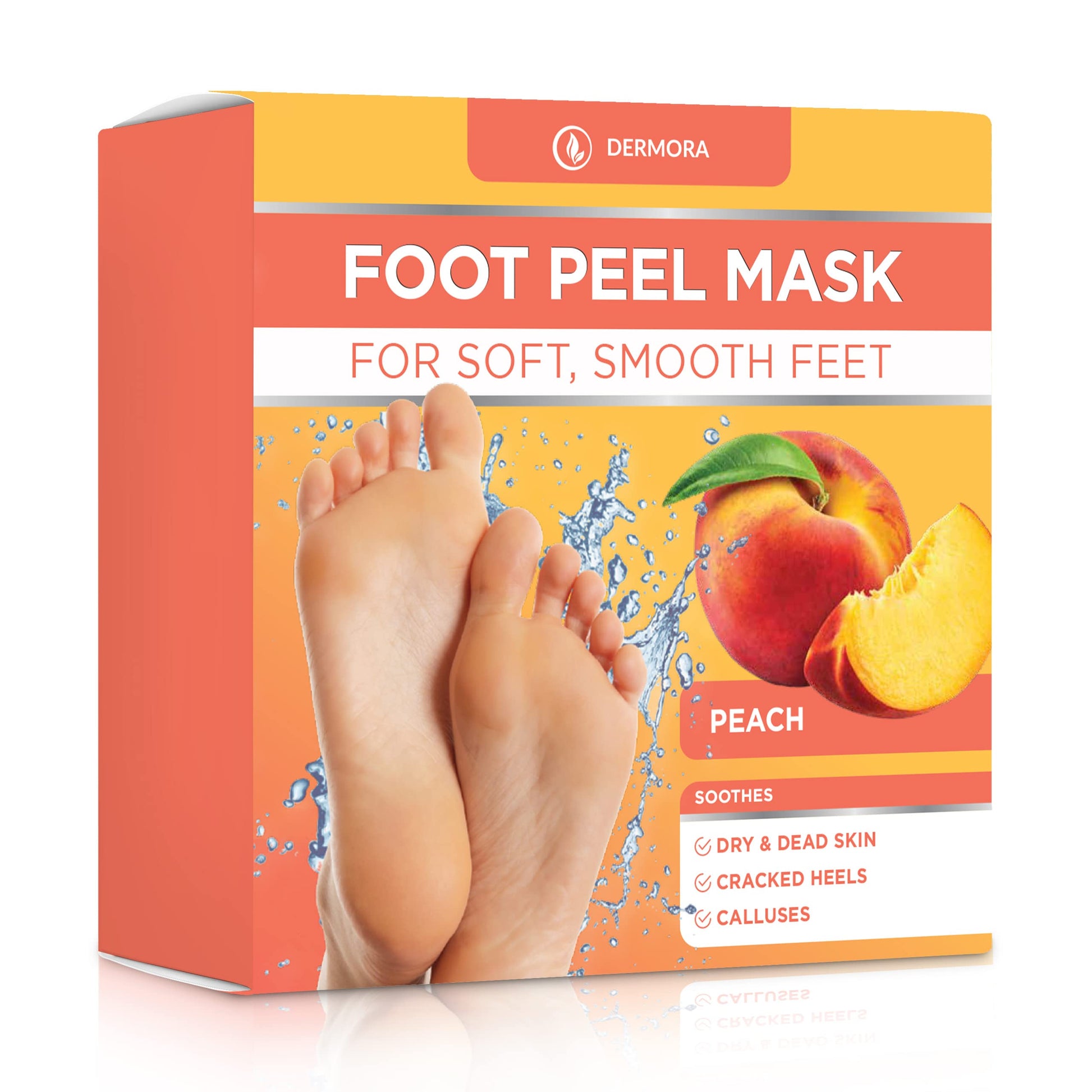 DERMORA Foot Peel Mask - 2 Pack of Regular Size Skin Exfoliating Foot Masks for Dry, Cracked Feet, Callus, Dead Skin Remover - Feet Peeling Mask for baby soft feet, Peach Scent