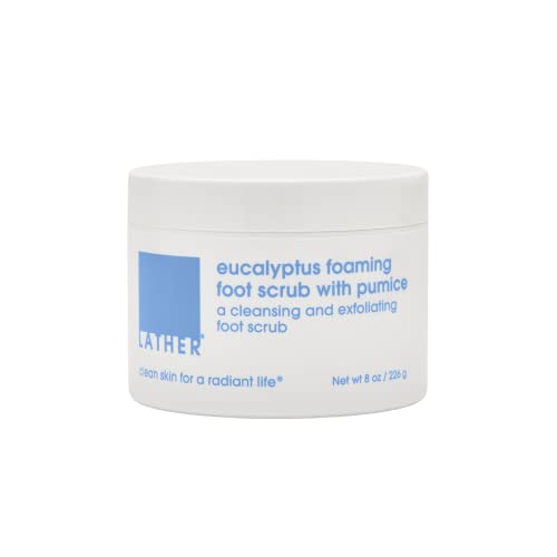 - FOOT SPA: LATHER's Eucalyptus Foaming Foot Scrub with Pumice Stone is perfect as a shower foot scrubber, to be used in a pedicure kit, or used between salon visits