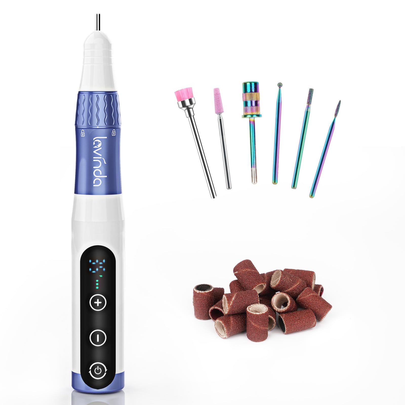 Lavinda Portable Electric Nail Drill, Cordless Nail Drill 35000 RPM Professional Manicure Pedicure Set, Adjustable Rechargeable Efile Nail Machine File Kit with Bits and Sanding Bands Tools