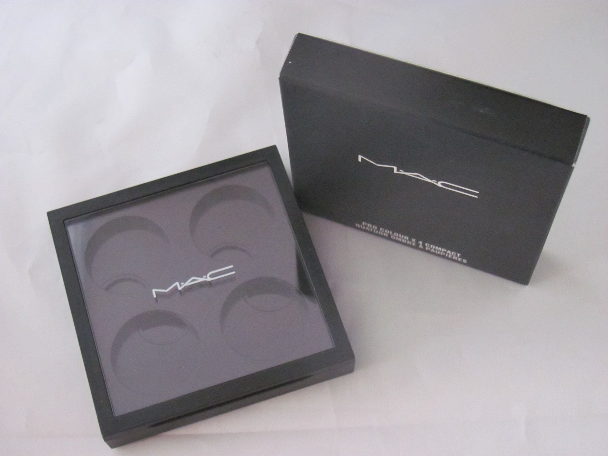 Details: MAC Colour x4 Compact Pro Palette Eyeshadow New in Box, Untested, Unused Only authentic MAC items sold here. Ultra-slim, stackable and easy to use. Fits compactly into your makeup kit. Allows for up to 4 shadows. Magnetic top closure. Also available 15-slot pro palette eyeshadow case. Magnetic closure.