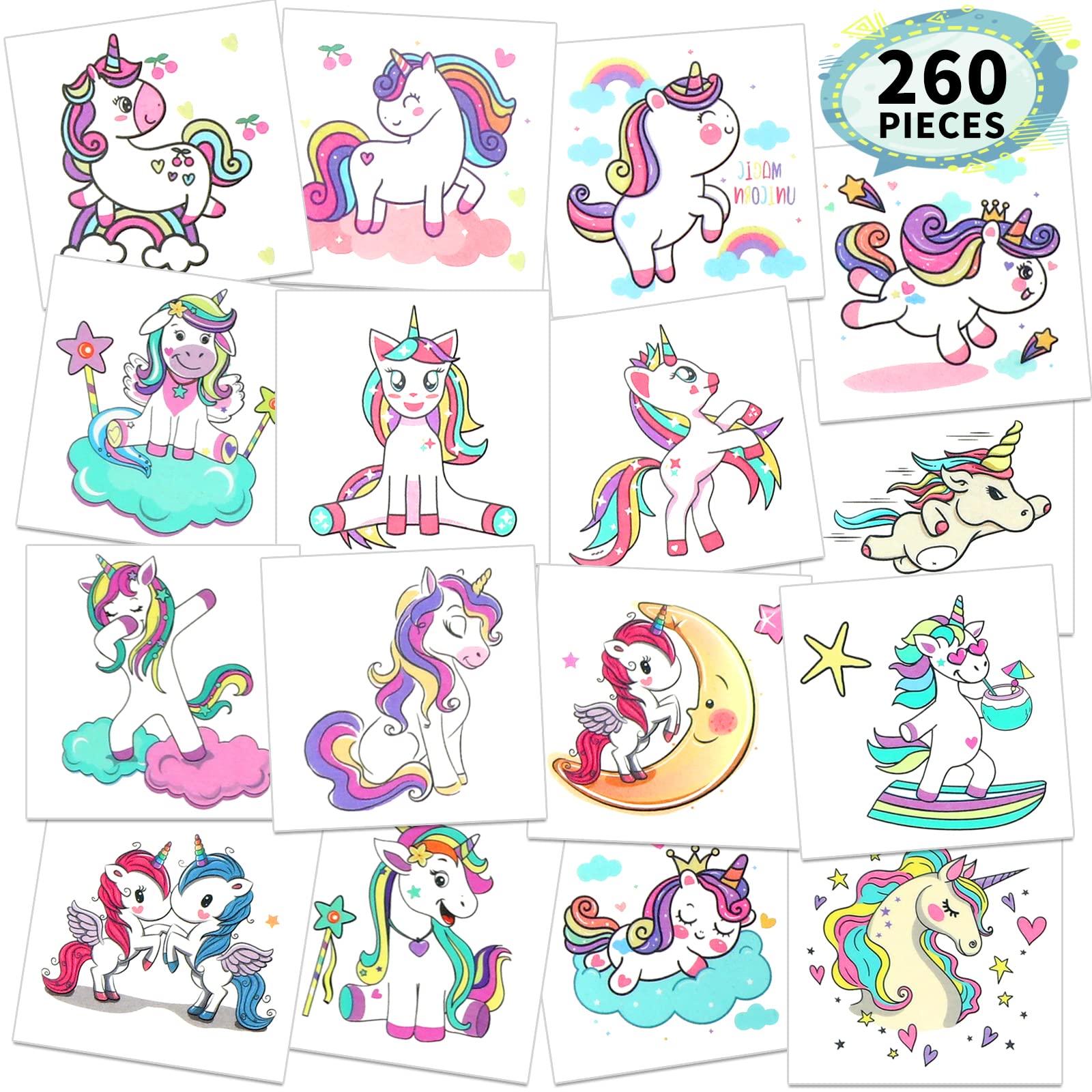 Metker Unicorn, Mermaid (260 PCS) kids waterproof temporary tattoos,children's temporary tattoo toys.Girl face tattoo stickers, girls temporary tattoos