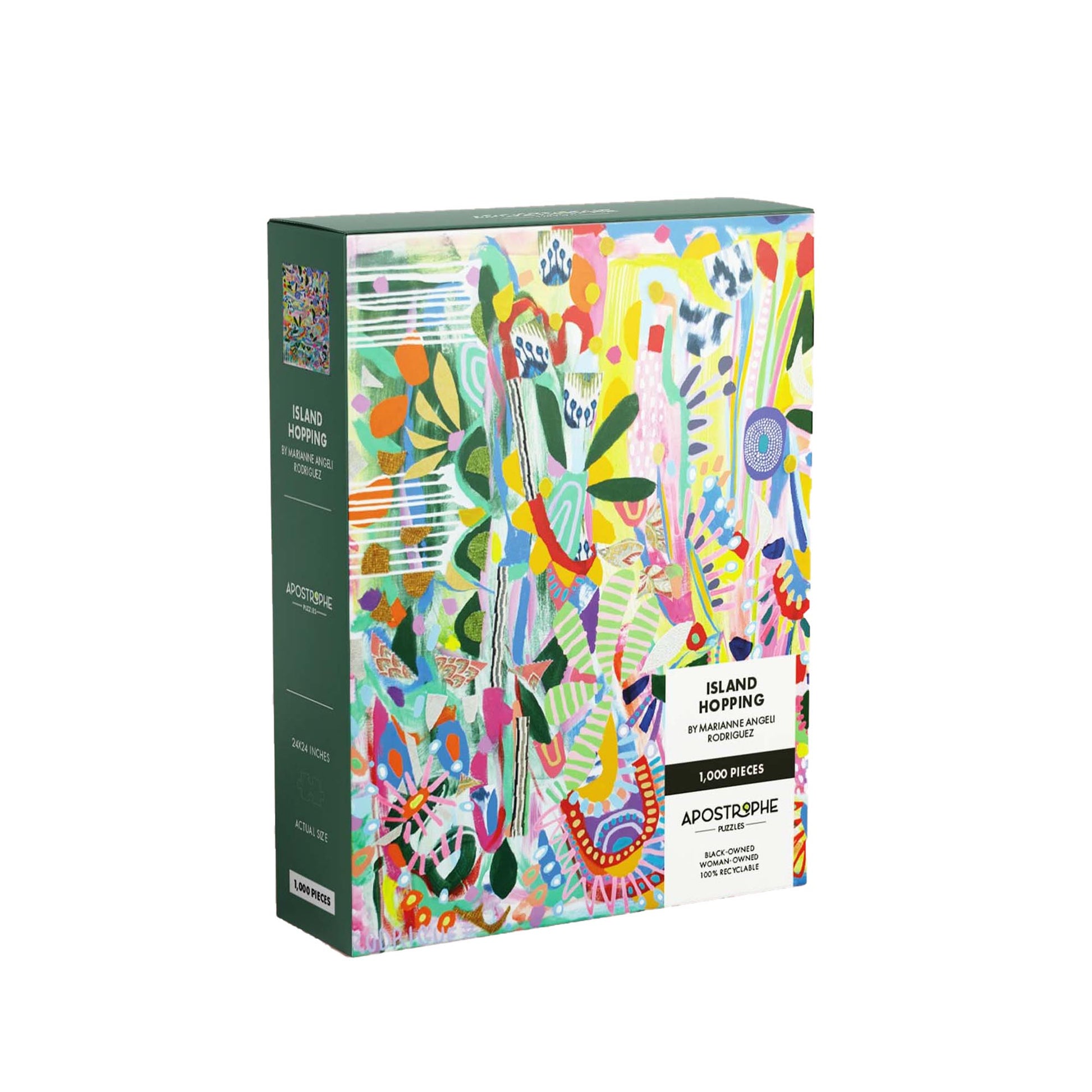 With artwork by Marianne Angeli Rodriguez, this 1000-piece puzzle is challenging as well as meditative and joyously beautiful. The founders of Apostrophe Puzzles created the brand with the knowledge that the work created by artists of color is valuable, desirable, and profitable. They believe that art appreciation is not only for the wealthy and that we can all participate in a culture of accessible patronage. Read more about the brand here.