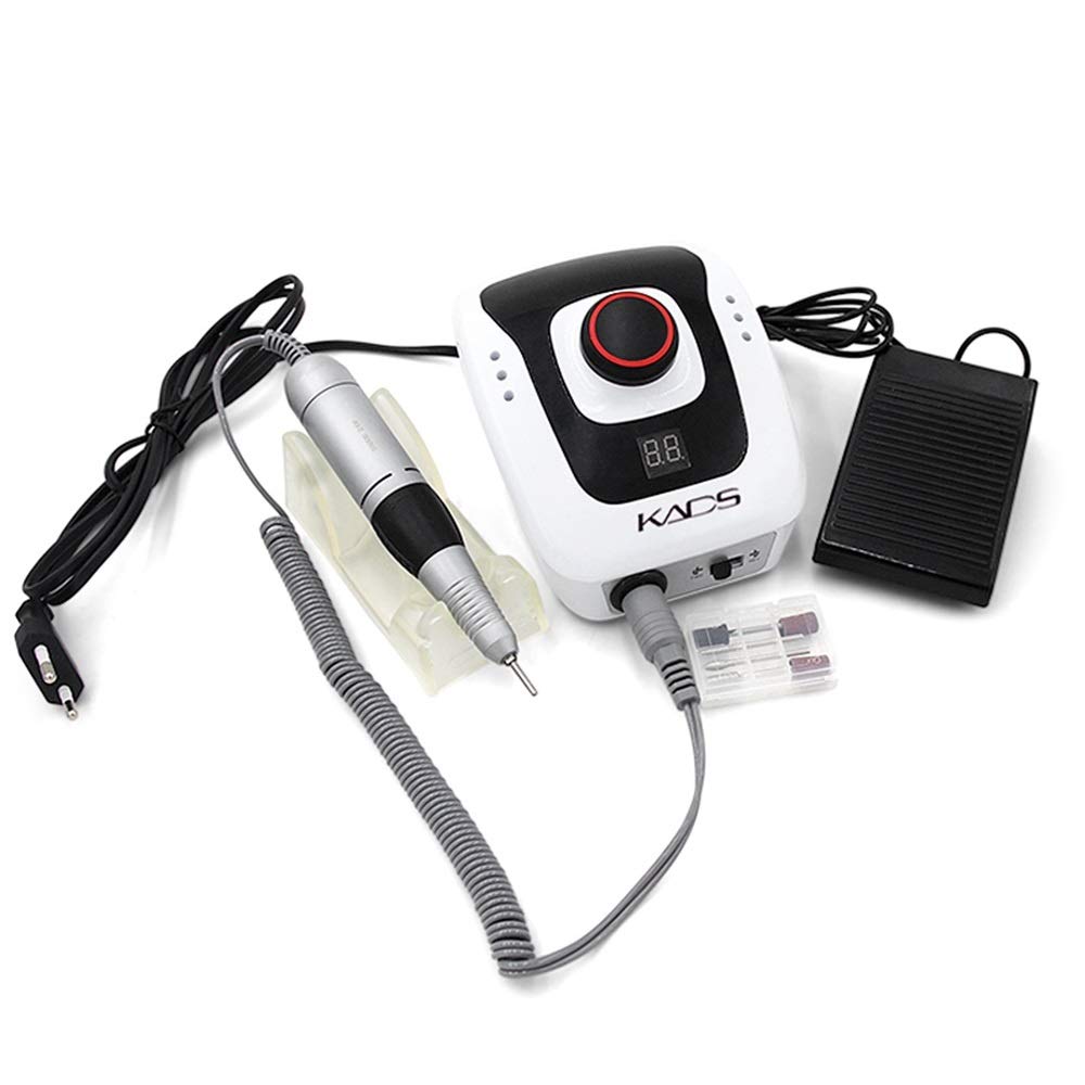 - This White Nail Drill Machine Set is design with automatic safety overload protection system.High speed could adjust from 300 to 35000 RPM.Low Noise, Low Heat, Low Vibration.Still steady even working in high speed