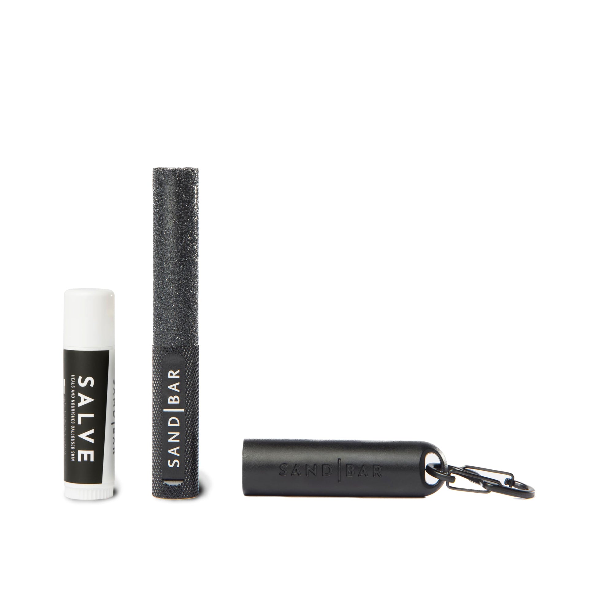 Details: Calluses... They're Great When they Protect the Soft, Baby Skin Underneath Them but They are the WORST When They Rip. This Leaves You Blistered, Bloody and Raw. This Problem is Universal in Active, Fitness Oriented Lifestyles. Whether You Lift Weights, CrossFit, Climb, Mountain Bike or Just About Anything Where Your Hands are Vital, Callus Buildup can be a Huge Problem. Enter SandBar, The Ultimate Solution for Callus Management. Our Patent- Pending SandBar Works Away that Hard, Built- Up Skin Allowing You to Train Longer and Stronger as well as Play Harder. Each Kit Comes With our SandBar SALVE, a Natural Salve Made to Condition and Nourish Your Hands. Why Risk Having to Stay Off Your Hands for a Week, When SandBar is the Non- Abrasive Solution to Keep Your Calluses to a Minimum and Keep You and Your Training on Point! We've Got Your Hands, and Your Back! Also Available in Black!