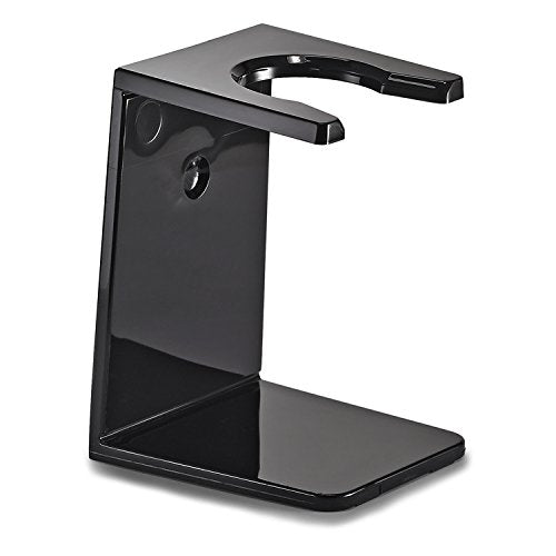 Details: The Black Brush Stand is a basic way to store your shaving brush. Featuring an adhesive backing, the shaving brush stand may be used in the shower or in a cabinet. Made of plastic, it will wear well in a wet environment.