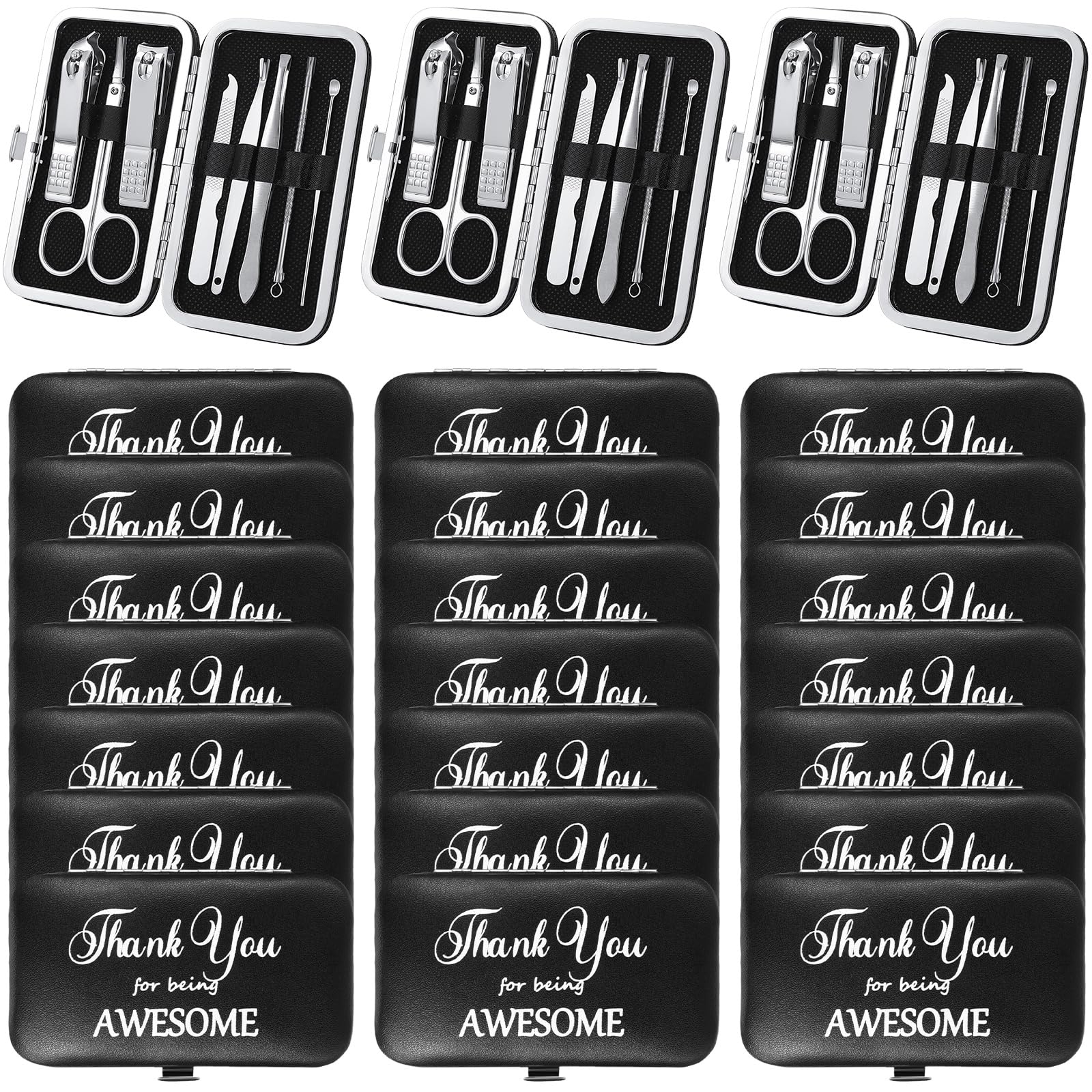 - Thank You Gift Set: this manicure kit is a comprehensive kit for effective nail care; Each package contains 24 sets of nail grooming kits, each set has 8 tools such as various manicure and pedicure tools like nail clippers and tweezers along with other necessary tools for hand, facial and foot care, enough for your daily life needs and requirements